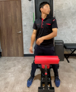 胴体を落とす反動で腕をあげるという肩の筋力を使わない